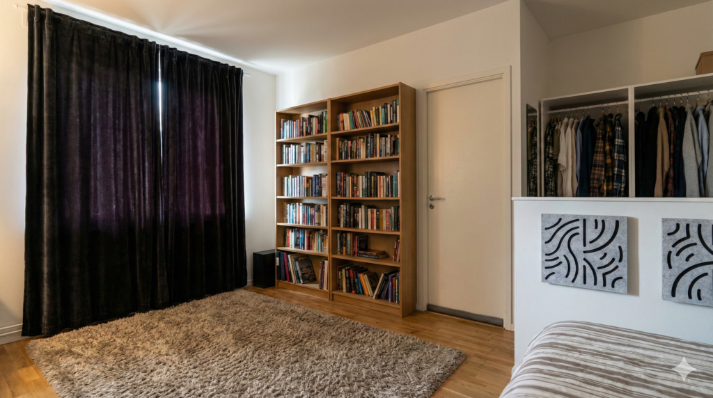 La estrategia barata perfecta consiste en combinar ambas técnicas: sellar las entradas de aire (donde entra aire, entra ruido) y añadir elementos absorbentes para «amortiguar» la percepción del sonido.