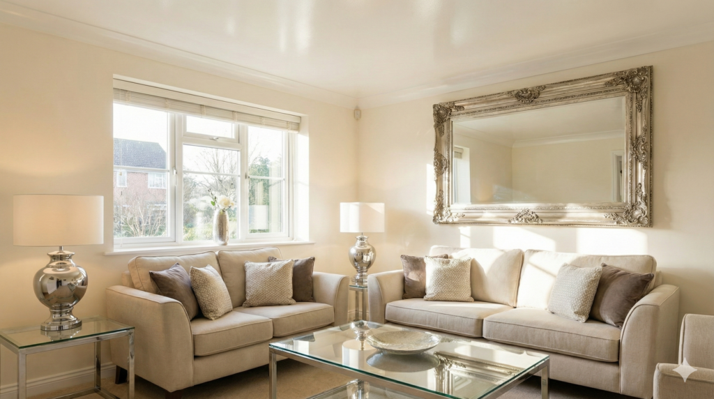 - La regla del 50/50 en espejos: No llenes una pared entera de espejos. El truco profesional es usar espejos que cubran el 50% de la superficie de la pared opuesta a la ventana. Demasiado espejo puede crear reflejos molestos (deslumbramiento), mientras que el 50% equilibra perfectamente la luz.
