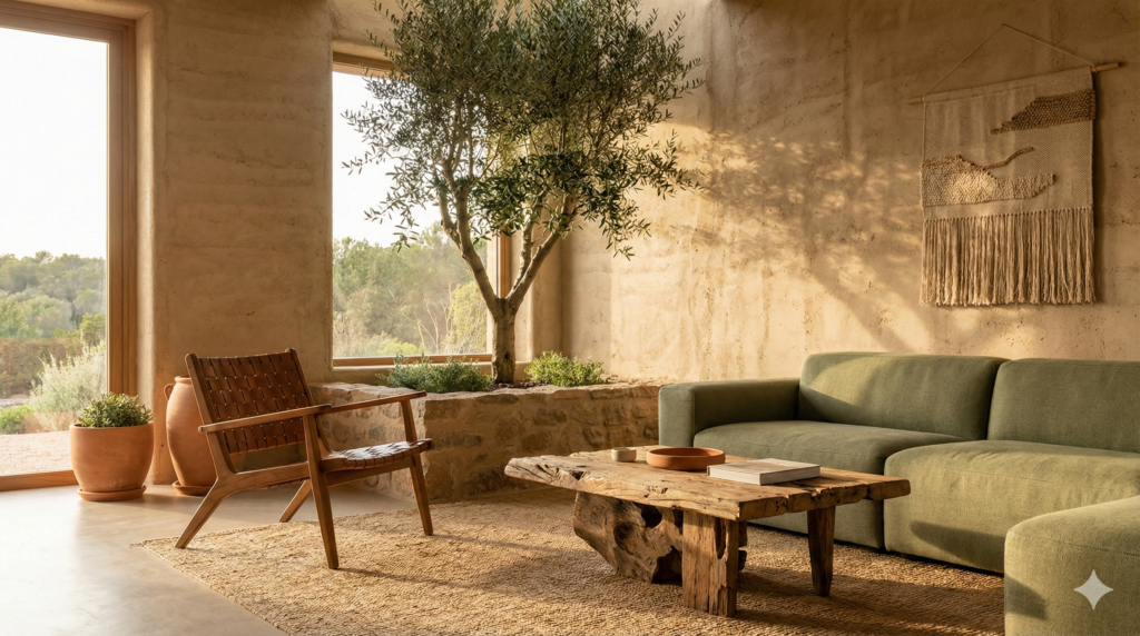 4. Minimalismo Cálido y Texturas Crudas («Raw»)