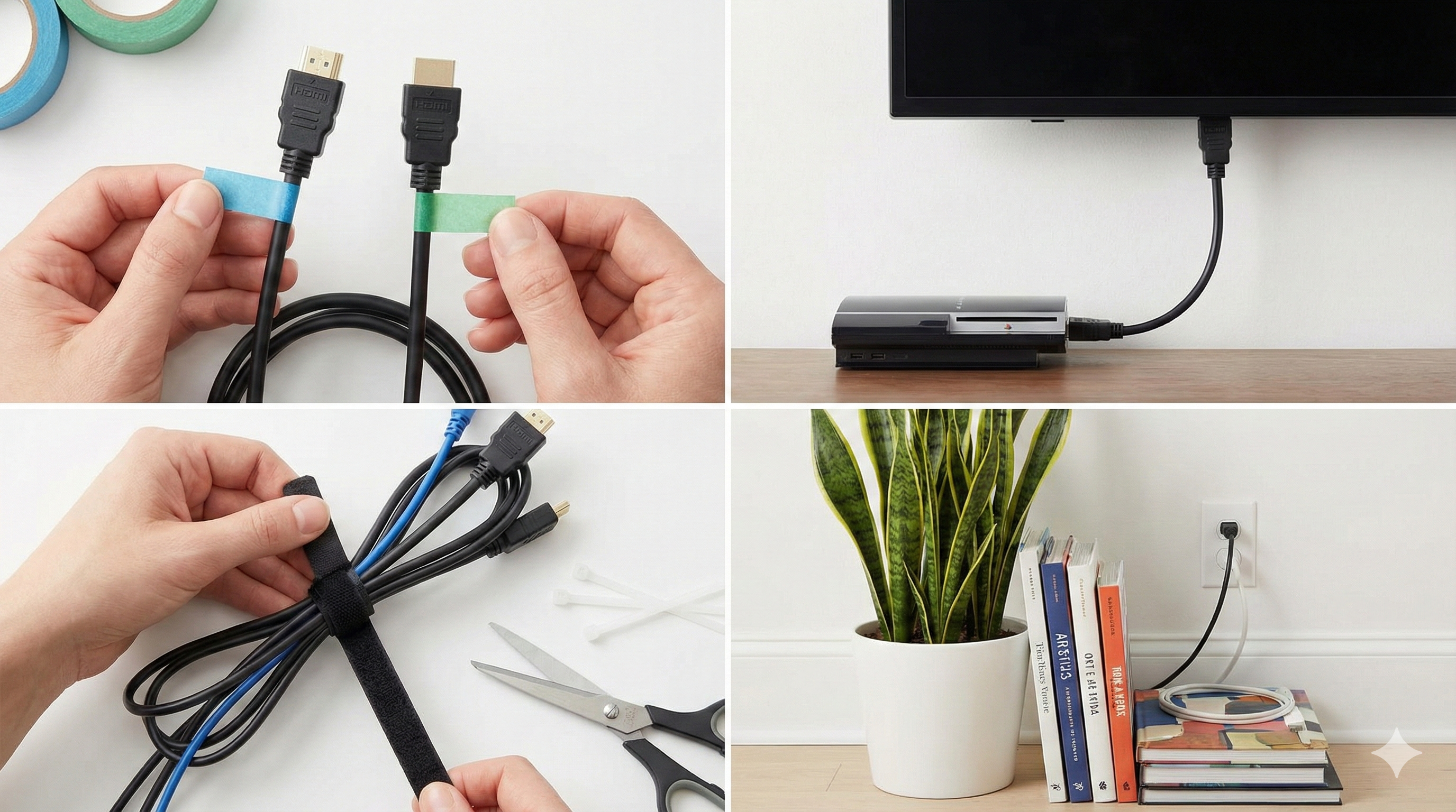 Cada vez que compres un aparato nuevo (una barra de sonido, un Apple TV, etc.), tómate 5 minutos extra para integrar su cable en tu sistema existente: