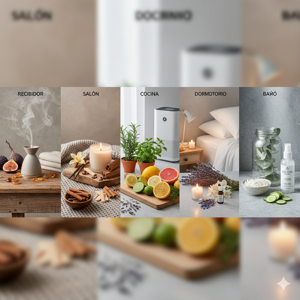 El error más común es usar el mismo aroma para toda la casa. Cada estancia tiene una función, y el aroma debe potenciarla, no contradecirla. Aquí tienes mi guía de maridaje olfativo por estancias.