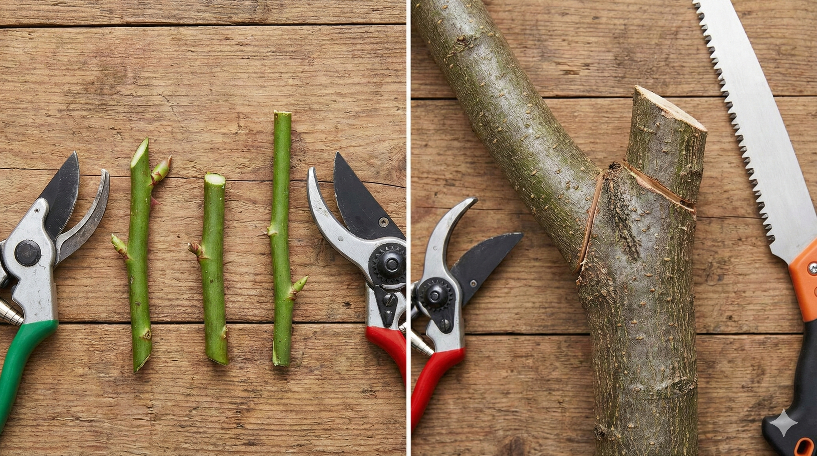 - Tijeras de Yunque (Anvil): Una hoja afilada golpea contra una base plana. Úsalas SOLO para madera muerta o muy dura. Si las usas en tallos verdes, machacarás el conducto de savia.