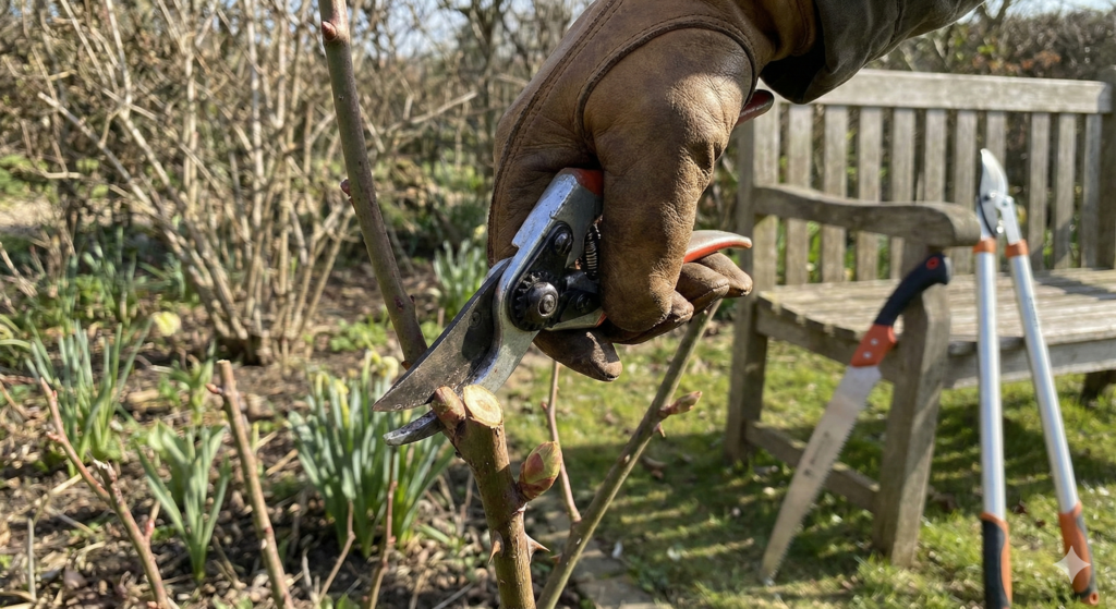 - Hortensias: Ojo aquí. Si podas las ramas que florecieron el año pasado, estás bien. Pero si cortas las ramas nuevas que salieron desde la base, estarás cortando las flores de este año. Identifica la madera vieja (grisácea) de la nueva (verde/rojiza).