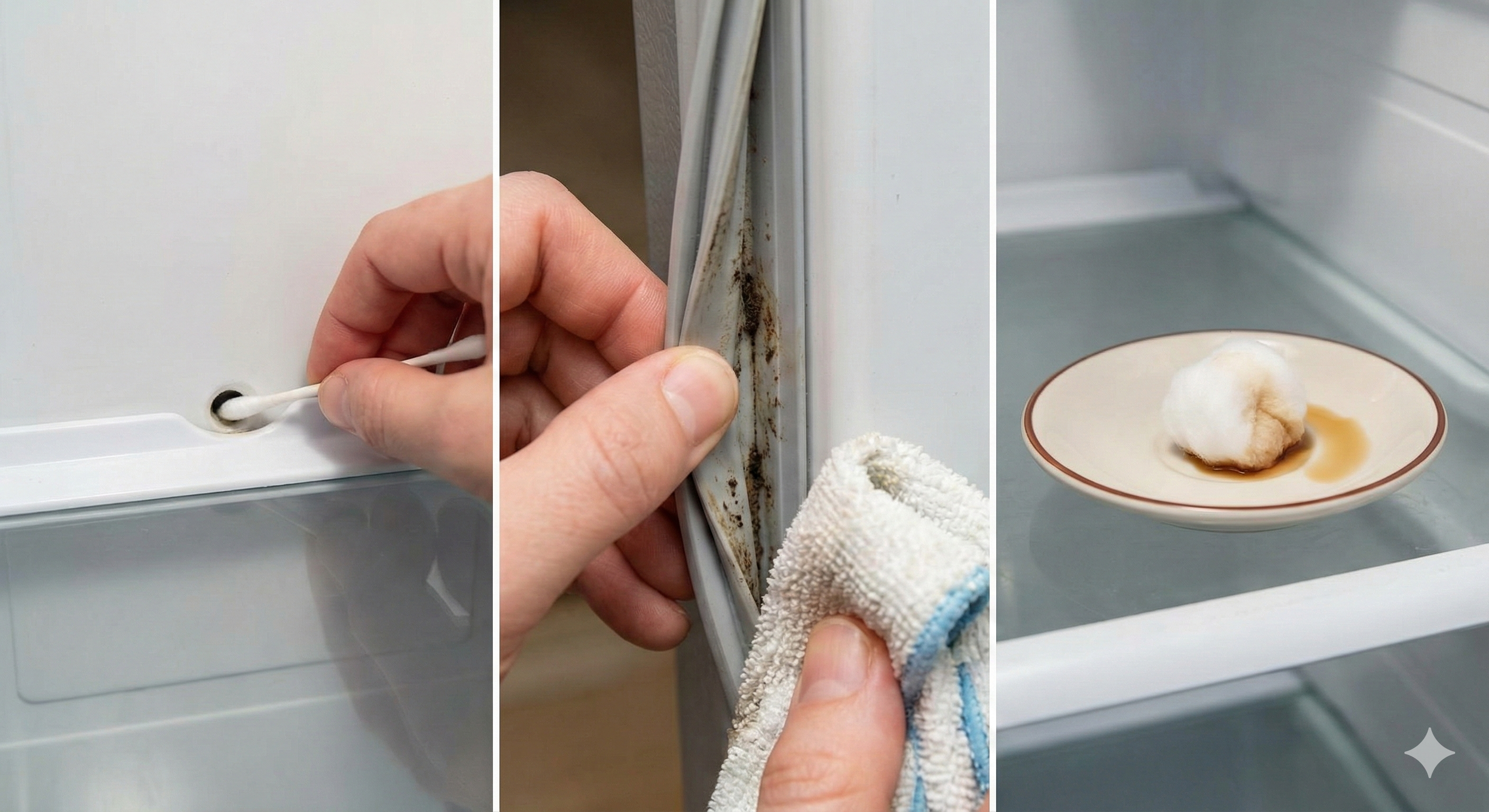 En la pared del fondo de tu nevera, justo encima de los cajones de verdura, hay un pequeño agujero. Es el drenaje de condensación. A menudo, este agujero se obstruye con restos de comida, moho y «limo». El agua se estanca ahí y se pudre.