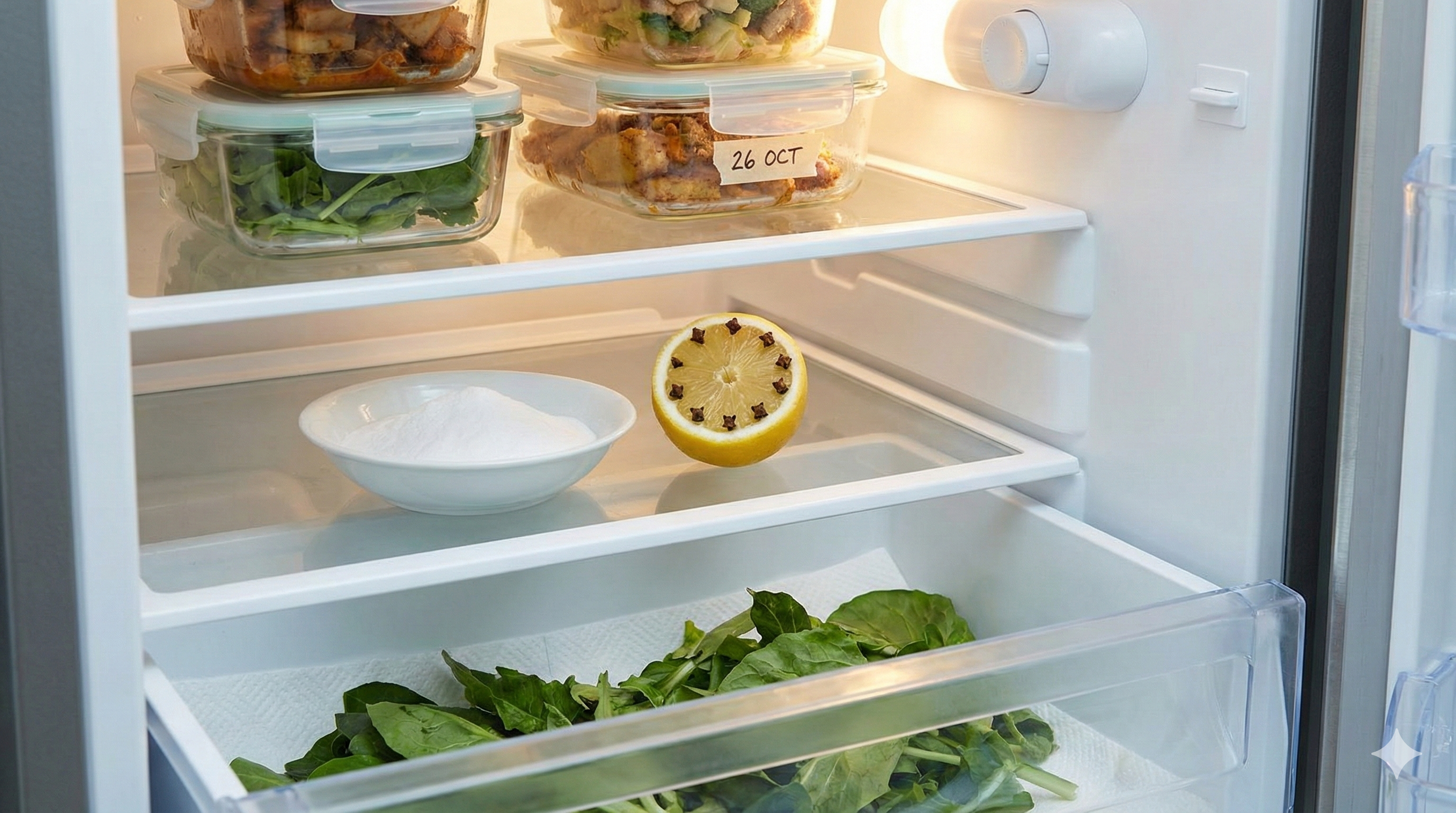 Una vez que la nevera está limpia, es hora de colocar a nuestros «centinelas». Estos ingredientes naturales no tapan el olor con fragancias artificiales; lo atrapan y lo eliminan.